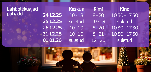 Ülemiste keskus on pühadel avatud järgmiselt: