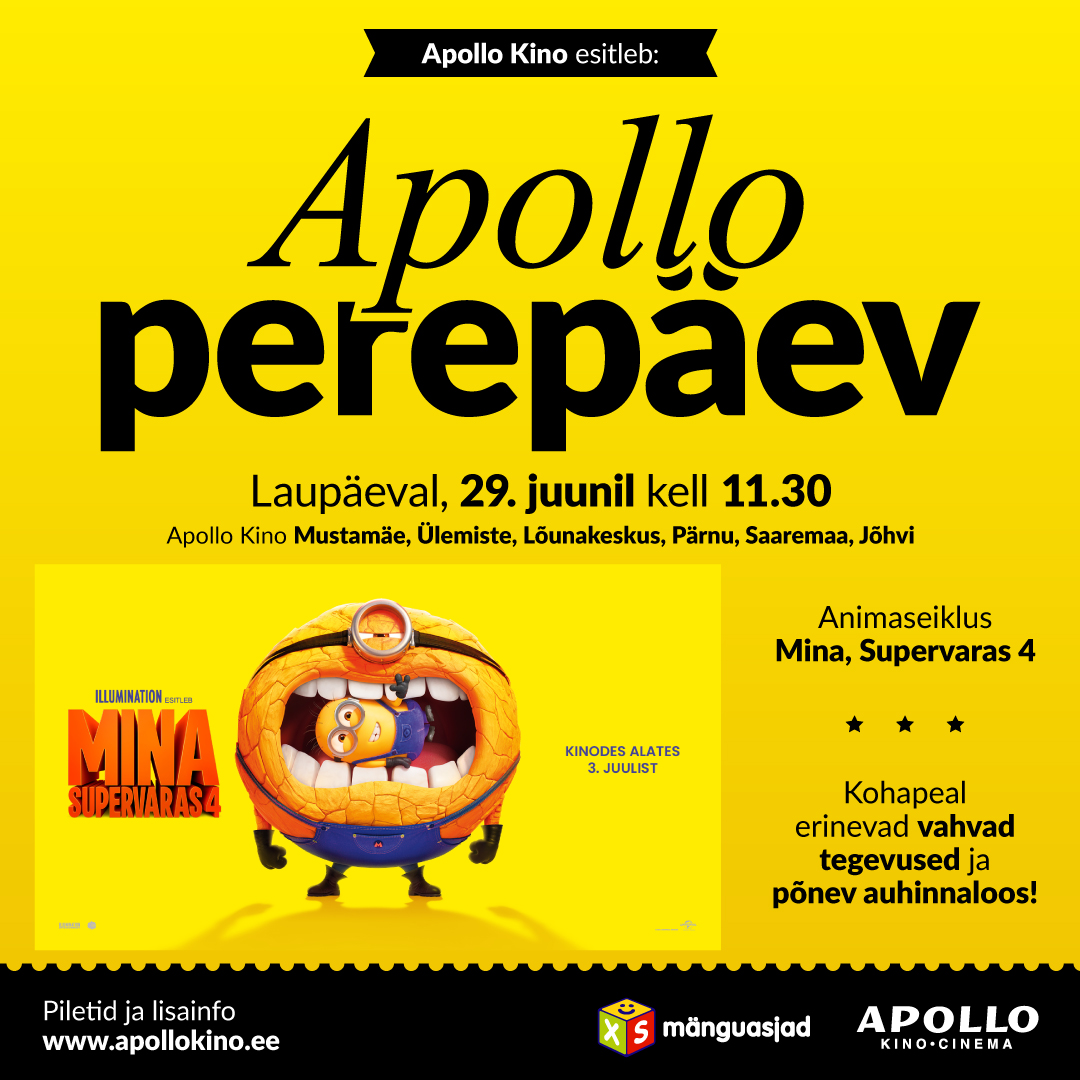 Tule 29. juunil kell 11.30 Ülemiste Apollosse järgmisele perepäevale, kus koos vaatame lõbusat seiklust “Mina, Supervaras 4“.