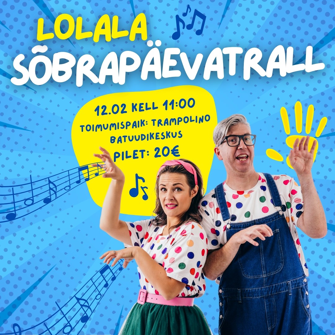 Perebänd LOLALA tuleb meile külla! YouTube’s tuntust kogunud lastelaulude kanali LOLALA Anna ja Arian pääsesid ekraanilt välja ja tulevad koos meiega laulma, tantsima ja mängima. Esitusele tulevad kõigi lemmikud “Krokodill Villi”, “Ole minu sõber”, “Väike dinosaurus”, “Mul on pall” ja paljud teised laulud. Kindlasti saab kuulda ka laste palavalt armastatud laule nagu “Meie talu loomad”, “Jänku laul”, “Suur ja väike” ja teisi hitte.