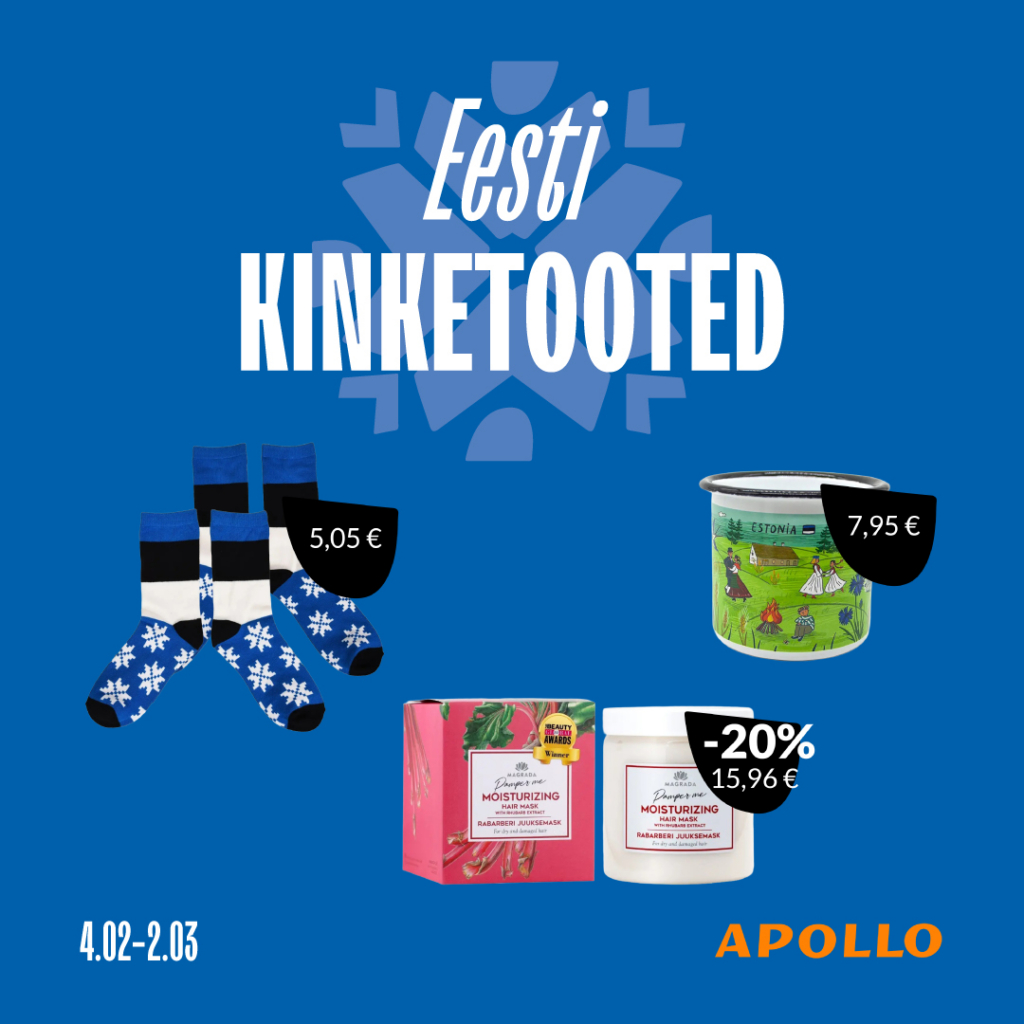 Väikesesse Eestisse mahub ikka suure südame jagu armastust. Veebruaris leiad Apollost meie oma autorite ilu-ja elulood, tavad ja tarkused, mängud, kingid ja laulud. Lisaks lähevad loosi teatripiletid Rahvusooperilt Estonia. Armastusega loodud elamused ootavad Apollos! Ikka Eestist. Armastusega! Vaata kõiki kampaania pakkumisi: www.apollo.ee/et/eesti