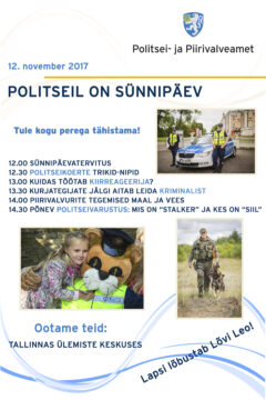 Politsei sünnipäev Ülemistes pühapäeval, 12. novembril kell 12.00-15.00